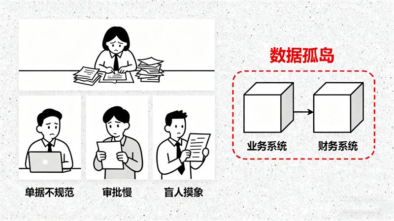 传统模式下,生产部门完成一批产品生产后,需手动填写“生产完工单”,交给仓库入库;仓库再录入“入库单”,同步传给销售部门;销售发货后,开具“出库单”,最后将所有单据汇总到财务部门,财务人员手动核对单据、录入凭证、核算成本——整个流程至少需要3-5天,且中间任何一个环节出现单据遗漏、数据错误,都会导致财务核算滞后、成本算不准,甚至影响后续的利润分析与订单决策。