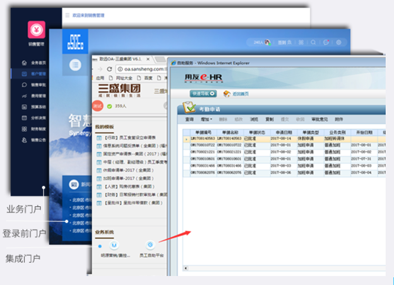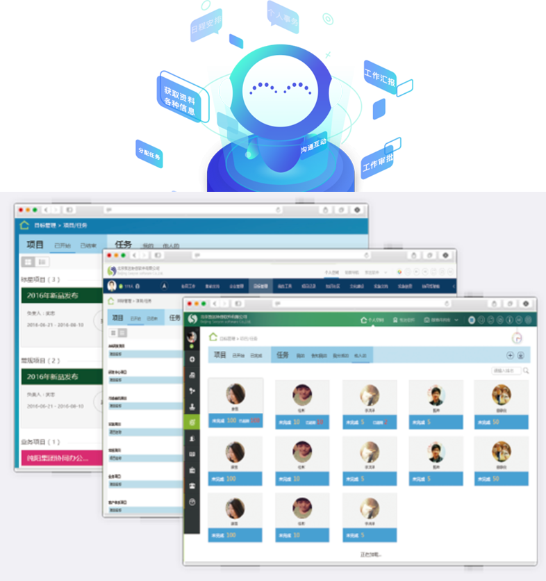 移动业务:围绕客户管理、HR管理、项目管理、运营管理等应用的全场景,支持多端运行,数据统一管理。