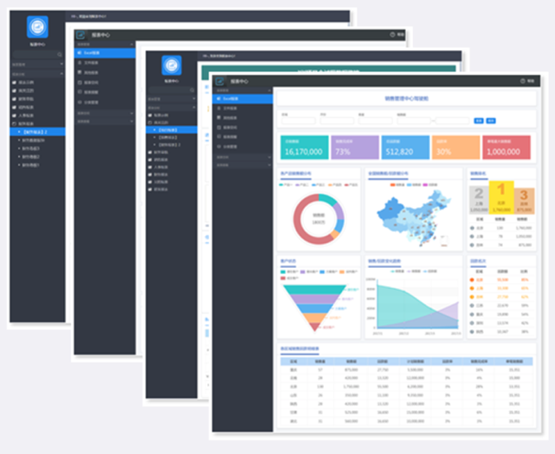 报表设计器:预置19种报表呈现样式;提供组合报表,可自定义组合检索条件,实现报表集中在一个页面查看。