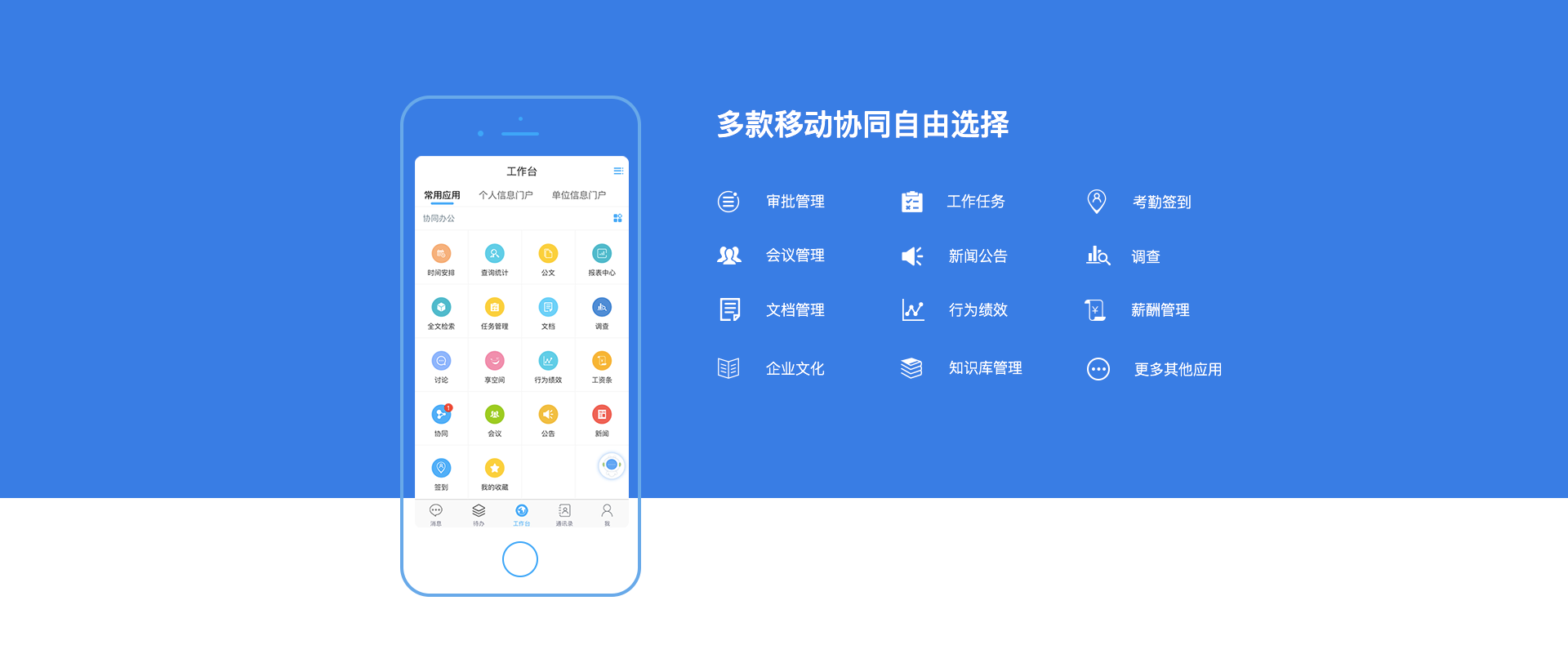 移动协同管理覆盖企业日常业务开展的方方面面,形成相对独立并又相互关联的移动应用场景。